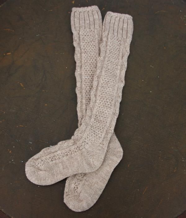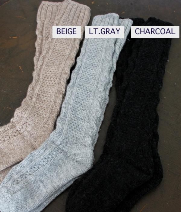 ふわっもこっな履き心地!膝下までのスーパーロングでブーツとも相性抜群。ケーブル模様が素敵な靴下です。